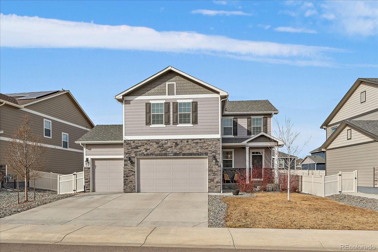 Thoughtfully designed and beautifully maintained, this near new single family home offers a seamless blend of modern functionality and timeless style in Neighbors Point. With open living spaces that are inviting and designed for connection, this home redefines everyday living. The main level is anchored by wide-plank flooring that flows effortlessly from the entry through the kitchen and great room, creating warmth and continuity. The kitchen features rich espresso cabinetry, granite countertops with natural movement, stainless steel appliances, a spacious center island with seating, and a walk-in pantry?perfectly positioned to overlook the living and dining areas for effortless entertaining. Natural light fills the great room, while sliding glass doors extend the living space to a covered patio and expansive fenced backyard. A thoughtfully designed paver patio creates an additional gathering area, ideal for enjoying Colorado evenings. The primary suite offers generous proportions including a large sitting room, a walk-in closet, and a bright ensuite bath with dual vanities. Two additional bedrooms, a full bath, and convenient upper-level laundry complete the second floor. The full unfinished basement presents endless potential for future expansion, storage, or customization. Additional features include central air, tankless water heater, solar panels and a three-car attached garage. Located near parks, trails, Centennial Elementary, shopping, and everyday amenities, this home delivers comfort, style, and room to grow in the desirable community of Neighbors Point.