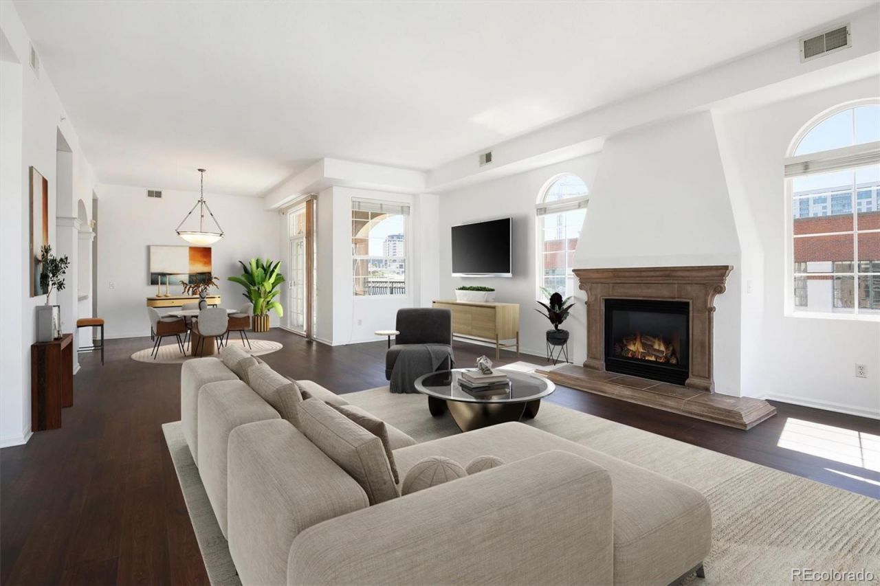 Stunning 2-bedroom, 2-bathroom CORNER condo for sale at Trieste with incredible mountain views! This fifth-floor unit is situated in the heart of the Golden Triangle, within a building featuring just 24 units, ensuring a tranquil and private environment. The condo offers a separate office space, adding to its practicality and versatility. Spanning approximately 1,665 square feet, it boasts a spacious and elegant living space with 10-foot ceilings. Enjoy the serene ambiance and luxurious feel of this exceptional residence. This condo features beautiful luxury vinyl floors throughout, and gas fireplace for those cold winter evenings. The well-appointed kitchen is equipped with stainless steel appliances, maple cabinets, and a beautiful granite countertop, creating a perfect setup for both entertaining and the modern chef. An eat-up bar adds to the convenience and functionality of the space. The condos private primary suite features a five-piece bathroom, complete with a tub and shower, as well as a spacious walk-in closet to accommodate your wardrobe and storage needs. Large laundry room with side-by-side washer and dryer. Enjoy your morning coffee or sunset cocktails from the two covered balconies while soaking in the sun and the majestic views of the mountains and city. Easy access to Denvers bike & walking paths along Cherry Creek Trail, and located one block from the Denver Art Museum. This condo includes two side-by-side parking spaces and one large storage space. New furnace and AC in 2024 and new washer and dryer in 2022.Building amenities include a rooftop deck with breathtaking views of both the Rocky Mountains and the urban landscape.
