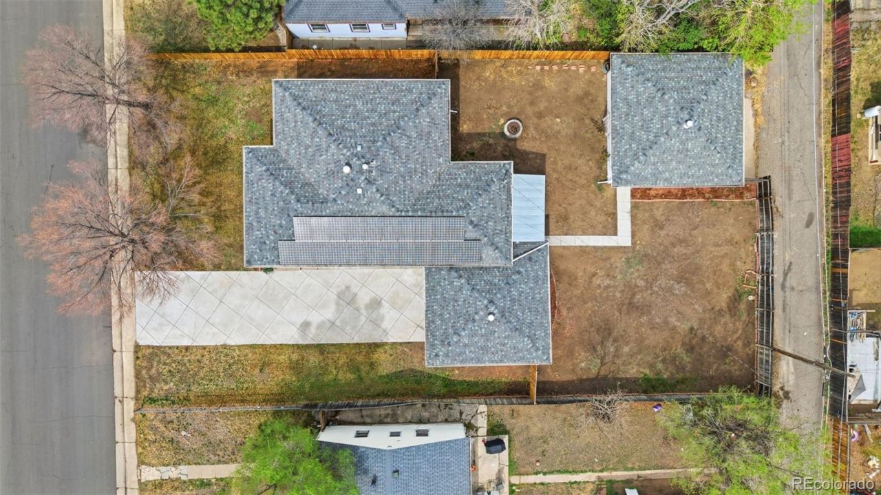 The highlight of this 3-bed, 2-bath Valverde home is the TWO two-car garages! Plus this Valverde home offers tons of potential with over 800 unfinished square feet in the basement. In front, two trees frame this classic home with rose bushes and a covered front porch. The new driveway and paid-off solar system add practical upgrades. Inside, the charm of this 1951 home shines through with beautiful wood floors, cove ceilings, and a graceful arched opening connecting the living and dining rooms. The main level features a large front bedroom that connects through a spacious Jack-and-Jill bathroom to another back bedroom. The kitchen offers plentiful cabinetry, an island, granite counter, and a wall of pantry storage. The house has central air/furnace plus evaporative cooling. The finished attached two-car garage has a brand new smart controller for the 9 zone sprinkler system that was just repaired and is now in working order. Step outside to the covered back porch and fenced backyard, ready for your vision. This home sits on a huge 9,520 SqFt lot (0.22 acres) with E-SU-DX zoning allowing for an Accessory Dwelling Unit (ADU). The oversized detached two-car garage accessed from the alley provides additional parking, workshop space, and storage. The full basement includes one finished non-conforming bedroom plus a basic bathroom area with a toilet and shower (no sink). The rest of the basement remains unfinished, including the laundry room with washer, dryer, utility sink, furnace, tankless water heater, and water softener. A 30 x 14 insulated, unfinished space could easily be finished into an amazing rec room while still leaving room for another bedroom and additional storage under the porch. Located just south of convenient 6th Avenue, this home offers quick access to downtown Denver and the mountains, plus 15 minutes to Wash Park/South Broadway, and 15 minutes to Sloans Lake/Highlands. Plus you will be only 8 minutes from the new Broncos Stadium at Burnham Yard!