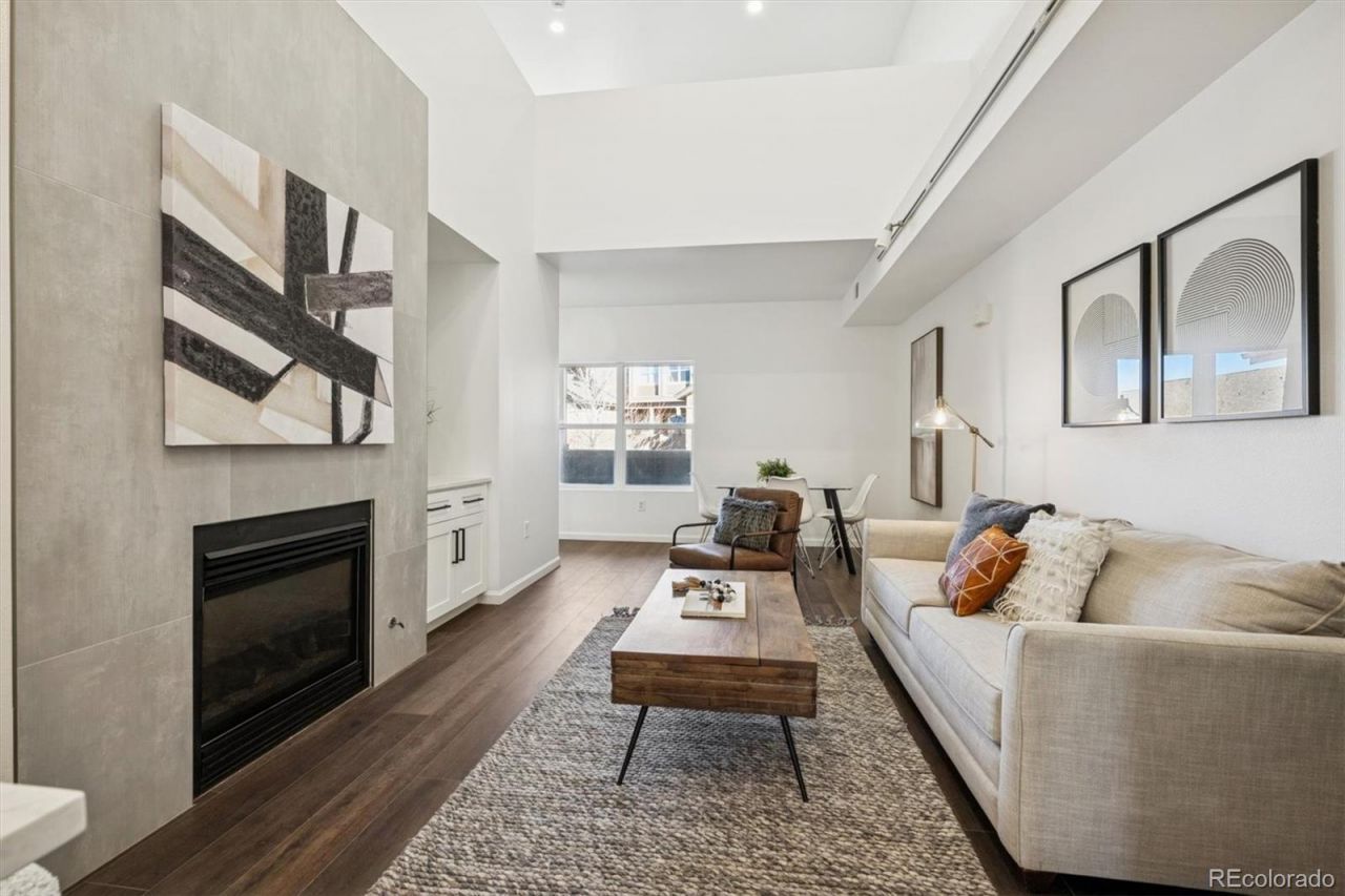 Step into this beautifully updated, open and airy condo showcasing modern flair throughout. High ceilings and abundant natural light welcome you into the bright living room, featuring soaring ceilings, custom built-in cabinetry for storage, and a cozy gas fireplace with elegant tile surround. The fully remodeled kitchen is a standout with sleek quartz countertops, fresh cabinetry, and a stylish backsplash?perfect for both everyday living and entertaining. A convenient laundry closet includes a washer and dryer for added ease. The spacious bedroom offers a peaceful retreat with vaulted ceilings and a bright, airy feel. The fully updated bathroom features gorgeous shower tile, chic finishes, and all-new modern upgrades. Upstairs, a versatile loft with brand-new carpet provides flexible space ideal for a home office, lounge, or guest area. Additional updates include new flooring throughout, a new water heater, and a convenient 1-car attached garage. Ideally located within walking distance to the W Toll Gate Creek Trail and just minutes from grocery stores, dining, and entertainment. This move-in-ready home is a must-see?schedule your showing quickly, as it wont last long.