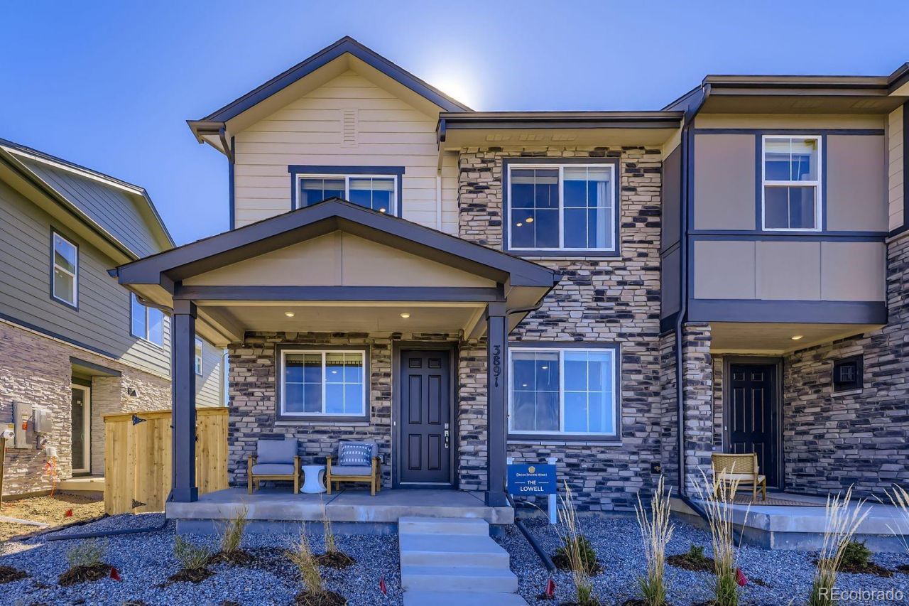 MOVE IN READY!! MODEL HOME AVAILABLE. Lease back option for investment, OR move in ready options BOTH AVAILABLE! The Lowell Plan offers 1,633 sq. ft. of comfortable, well-designed living space with 3 bedrooms, 2.5 bathrooms, and a 2-car garage. The first floor features the garage, dining space, great room with gas fireplace, powder bath, and a spacious covered porch?perfect for relaxing or entertaining. Upstairs, youll find all three bedrooms including the primary suite, two full bathrooms, and a versatile 10x11 loft space ideal for a home office, playroom, or lounge, great views overlooking range and open space park!This home is ready for move-in or leaseback!Pictures are of actual home, come take a tour today!