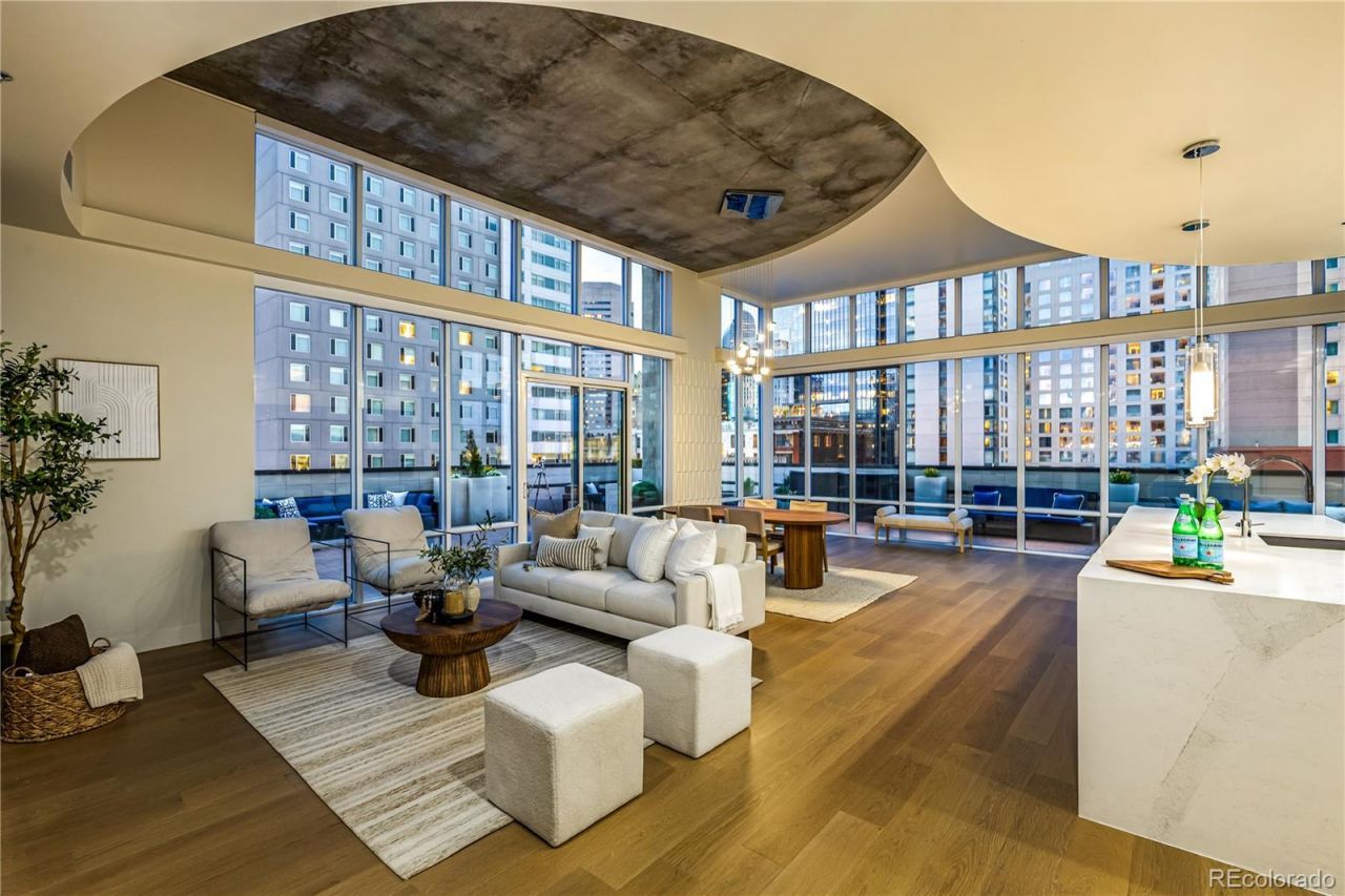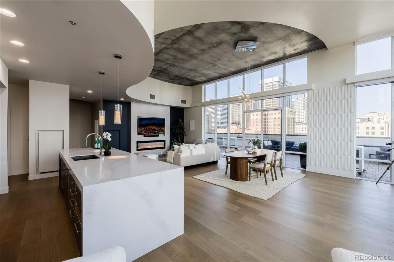 A TRUE TROPHY RESIDENCE in downtowns iconic Spire Building. This fully remodeled luxury corner residence delivers a level of scale, design, and indoor-outdoor living that is EXCEPTIONALLY rare. It lives like a private penthouse retreat with a backyard in the sky! Its expansive 1781 sf wraparound private terrace seamlessly extends your space into the skyline? designed for unforgettable evenings in an unparalleled setting for entertaining, dining, and taking in panoramic city views. Rare outdoor natural gas, electricity and water services the lush landscaping, gas grill, fire pit, and patio lighting. Inside, experience the soaring ceilings and dramatic 14 ft tall floor-to-ceiling glass walls that flood the home with natural light and create an open, architectural feel rarely found in urban residences. Every surface has been thoughtfully reimagined, featuring a chefs kitchen, spa-quality bathrooms, new hardwood flooring, and luxury designer finishes throughout. This home blends sophistication with comfort at every turn. Two private bedroom suites each with en-suite marbled bathrooms and custom closet space. The award winning kitchen is designed to impress, with an oversized 13 ft quartz island, premium luxury appliances and custom finishes that elevate both everyday living and large-scale entertaining. RARE- 3 premium lower level parking spaces (worth 220K) are included in the secure parking garage. Exclusive SKY CLUB access and a storage unit are another added bonus. All patio furnishings included! Spire offers resort-level amenities including a year-round heated pool, hot tub, fitness center, 24hr concierge service & security guard, resident lounges, and garage dog park. Located just steps from Denvers best dining, entertainment and sports venues including the Denver Performing Arts Center, Larimer Square, and Union Station, a one-of-a-kind opportunity to own one of Downtown Denvers most exceptional residences, where luxury, scale, and lifestyle converge.