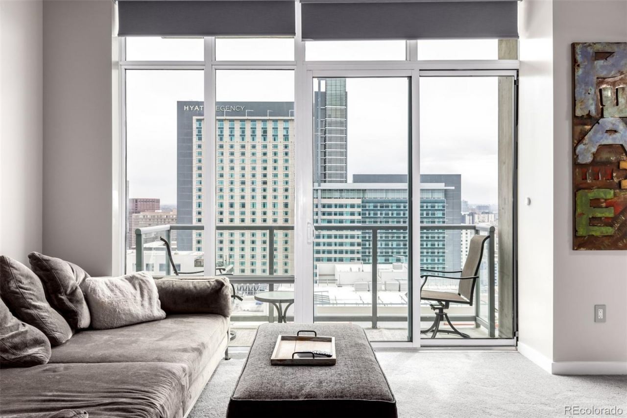 Experience elevated city living in this stunning southeast-facing 1-bedroom, 1-bath residence on the 27th floor, offering breathtaking skyline and mountain views from the iconic SPIRE building. For many, the dream of living in the heart of the city feels like a distant goal?but this home makes that dream an attainable reality. A welcoming foyer opens to a light-filled interior that immediately captures your attention. The space is defined by high ceilings, wood floors, new paint, and dramatic floor-to-ceiling glass that frames the incredible vistas. Automatic blinds throughout the home add both convenience and a sleek, modern touch. The open kitchen is perfect for entertaining, featuring custom granite countertops, stainless steel appliances, and a breakfast bar island where guests can gather. The bright bedroom includes a generous walk-in closet, providing ample storage. The modern bathroom is appointed with a sleek, glass-enclosed tub/shower combination. For everyday ease, a stacked washer and dryer are conveniently located within the unit. Step out onto your private balcony to enjoy fresh air and soak in the breathtaking city and mountain views?a perfect backdrop for your morning coffee or an evening cocktail. This home also includes a reserved deeded parking space, a valuable convenience in downtown Denver. As a resident of SPIRE, youll have access to resort-style amenities that are second to none, including a heated pool and hot tub open year-round, a state-of-the-art fitness center, a spacious club room and movie theater. The location is unparalleled. You are ideally situated near the 16th Street Mall, the Denver Performing Arts Complex (DCPA), Sculpture Park, historic Larimer Square, and Denvers best dining and entertainment venues. This is your opportunity to own a piece of the Denver skyline.