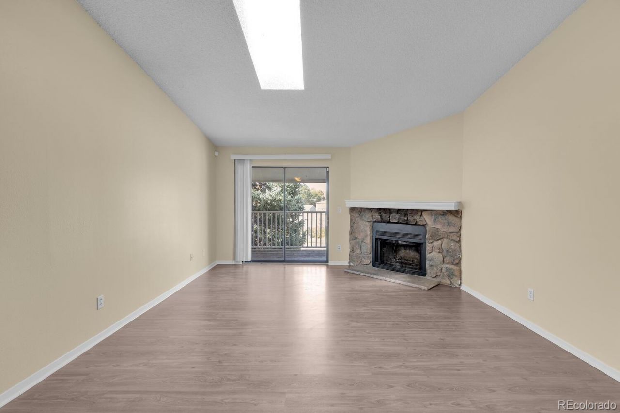 Welcome home to this bright and inviting top-floor condo offering comfort, convenience, and mountain views! This well-maintained 1-bedroom, 1-bath home features laminate flooring throughout and a spacious open layout filled with natural light from a large skylight. The cozy living area is anchored by a charming wood-burning fireplace and flows seamlessly to a covered private balcony, perfect for enjoying morning coffee or relaxing evenings with mountain views. The kitchen opens to the main living space, creating an ideal setup for both everyday living and entertaining. The generously sized primary bedroom includes a large walk-in closet, and the in-unit laundry adds everyday convenience. Located in the well-managed Foxdale Condos community, residents enjoy access to a clubhouse, pool, and tennis courts, with HOA covering many maintenance items. Ideally situated near Buckley Space Force Base, DIA, shopping, dining, and major commuter routes, this home is perfect for first-time buyers, investors, or anyone looking for low-maintenance living in a great location.